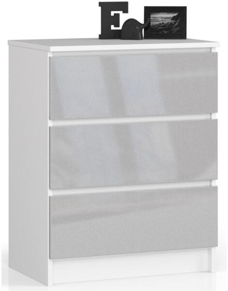 Modern, kompakt komód három fiókkal, metál magasfényű frontokkal és fehér korpusszal. Kiváló minőségű MDF anyagból készült, kopásálló felülettel és ABS élzárással a tartósság érdekében. Elegáns tárolási megoldás modern otthonokbaEz a modern vonalvezetésű komód tökéletes választás azoknak, akik stílusos és praktikus tárolási megoldást keresnek. A 60 cm sz