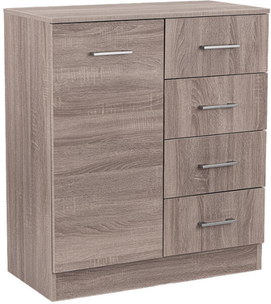 Miami komód 1 ajtós 4 fiókos 80x92 cm yorki tölgy-yorki tölgy Egy univerzális tároló megoldást keresel, amely elegánsan illeszkedik otthonod bármely szobájába? A Miami komód kiváló választás az előszobába, a nappaliba, a hálószobába, sőt, akár az irodába is. Ez a letisztult dizájnnal rendelkező komód nemcsak funkcionális, hanem stílusos kiegészítője is lehet bárm