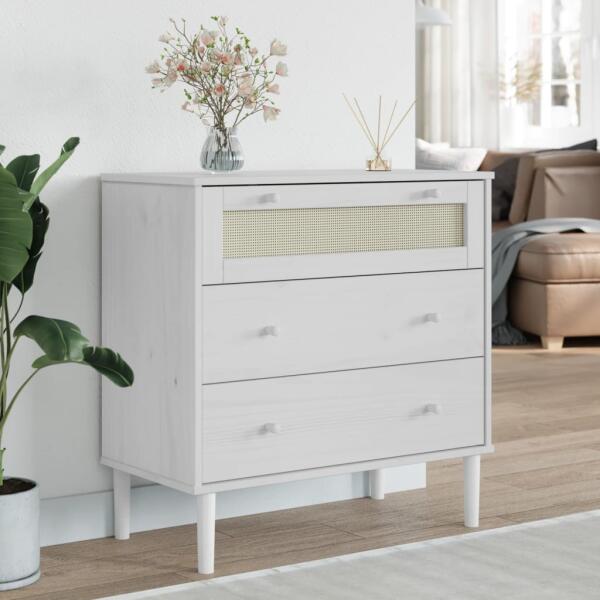 Ez a fából készült fiókos szekrény, amely elegáns bájt áraszt, lakberendezése központjává fog válni. Tömör fenyőfa: A tömör fenyőfa egy gyönyörű természetes anyag. A fenyőfa erezete egyenes, a csomók pedig jellegzetes, rusztikus megjelenést kölcsönöznek az anyagnak. UV-lakk: Az UV-lakk egy speciális lakktípus, amely ultraibolya-szárítógéppel készül. Élénkebb