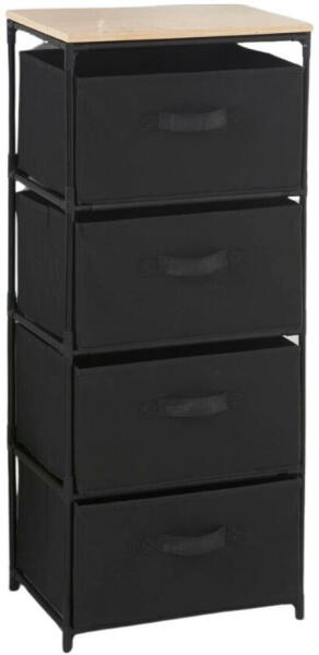 KIFUTÓ TERMÉK! Korlátozott darabszámban! Modern vászonfiókos komód | Fekete fém váz | 4db szövetfiók | Aranytölgy bútorlap | 40x90cm | Raktárról | Azonnali kiszállítással | Kedvező áron Intenso fémvázas 4 fiókos komód felső polccal. A fekete fém váz, az aranytölgy árnyalatú bútorlap, valamint a fekete vászonszövet fiókok harmonikus kombinációt alkotnak. A massz