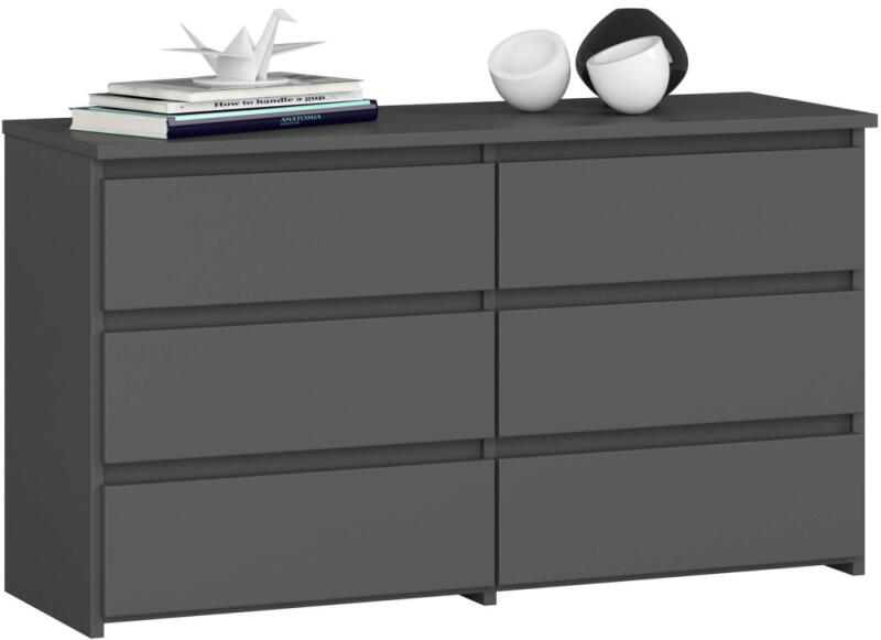 Modern, 6 fiókos komód laminált bútorlapból, amely tökéletes tárolási megoldást kínál. A matt szürke kivitel és a praktikus kialakítás ideálissá teszi bármely helyiségbe. Elegáns tárolási megoldás modern otthonokbaA CL100 komód egy sokoldalú bútordarab, amely ötvözi a funkcionalitást és a modern dizájnt. A 100 cm széles komód hat tágas fiókkal rendelkezik, amely