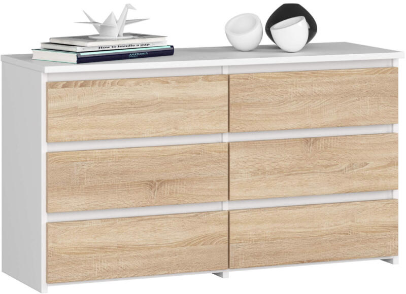 Modern, praktikus komód 6 tágas fiókkal, amely tökéletes tárolási megoldást kínál. A fehér korpusz és sonoma tölgy frontok elegáns kombinációja minden enteriőrbe harmonikusan illeszkedik. Elegáns tárolási megoldás modern otthonokbaEz a stílusos komód tökéletesen ötvözi a funkcionalitást és az esztétikumot. A 100 cm széles bútor 6 tágas fiókkal rendelkezik, amelyek
