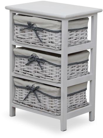 RUBY 3, komód, 3 fonott kosárral, Anyag: fa / vesszők Szín: szürkésfehér váz és szürkésfehér kosarak Méret: komód (Szé/Ma/Mé): 40x57x29 cm Méret: kosár (Szé/Ma): 32,5x12,5 cm A lábak magassága: 5,6 cm