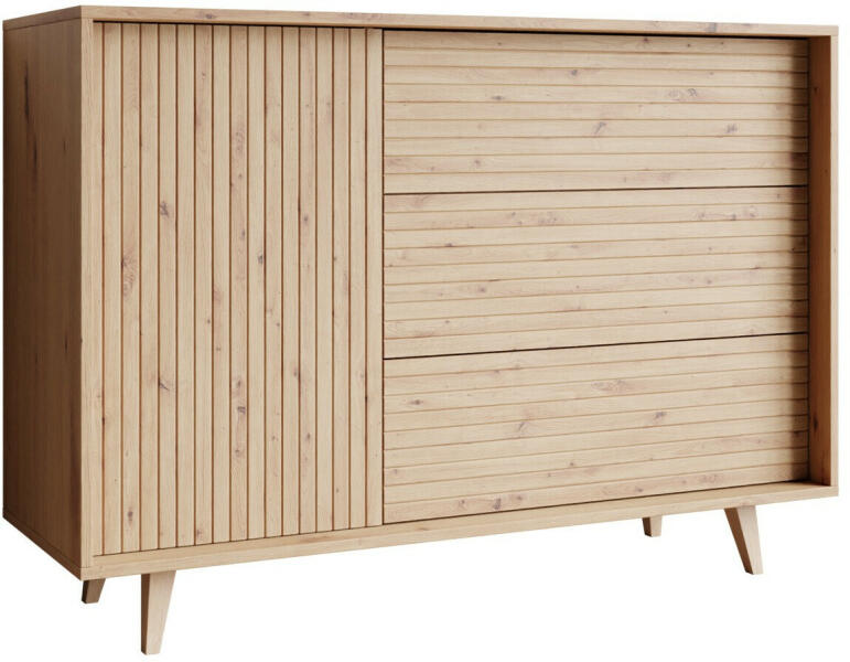 Modern, sokoldalú komód 3 ajtóval és 3 fiókkal, amely tökéletes tárolási megoldást kínál otthona vagy irodája számára. A kopásálló laminált lapból készült bútor elegáns éger színben, ABS élzárással a tartósság érdekében. Sokoldalú tárolási megoldás modern kivitelbenEz a 138 cm széles komód tökéletes választás azoknak, akik praktikus és stílusos tárolá