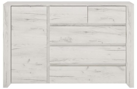 ANGEL, komód típus 41 Anyag: DTD laminált Szín: fehér craft Méretek: (Szé x Mé x Ma): 118,7x40,2x76,5 cm Méretek: ajtók (Szé x Ma): 32,3x70,3 cm Méretek: nagyobb fiókok (Szé x Ma): 69,5x15,7 cm Méretek: kisebb fiókok (Szé x Ma): 34,5x15,7 cm