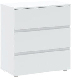 Viana II New M3 három fiókos komód Fehér A Viana II New M3 három fiókos komód elegáns fehér színével és minimalista stílusával ideális választás bármely modern belső térhez. Méretei: 69 x 40 x 77 cm. Laminált forgácslapból készült, tartós és könnyen tisztítható. Három fiókja praktikus tárolóhelyet kínál, miközben helytakarékos kialakításával kisebb helyis