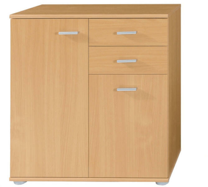 TAMPA 2T2S, komód Anyag és szín: DTD laminált, bükkfa színű Méretek ? komód (Sz x Ma x Mé): 71x75x35 cm Méretek ? ajtó (Sz x Ma): 35x45/69,5 cm Méretek ? fiók (Sz x Ma): 35x12,2 cm A lábak 2 cm magasak A belső polc anyagának vastagsága: 1,7 cm