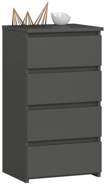 Modern, kompakt komód 4 tágas fiókkal, grafitszürke kivitelben. Kiváló minőségű, 16 mm-es kopásálló laminált bútorlapból készült, ABS élzárással a tartósság érdekében. Elegáns tárolási megoldás kompakt méretbenA CL4 komód tökéletes választás azoknak, akik praktikus, mégis stílusos tárolási megoldást keresnek. A grafitszürke színű bútor 4 tágas fiókjáva