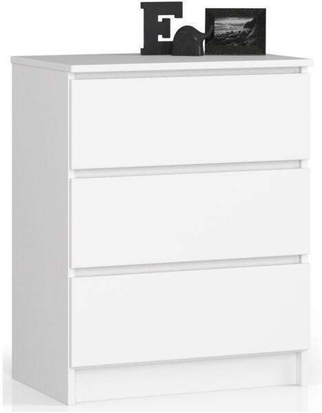 Modern, skandináv stílusú fehér komód három tágas fiókkal, amely tökéletes tárolási megoldást kínál. A kopásálló laminált lapból készült bútor praktikus és elegáns kiegészítője lehet bármely helyiségnek. Elegáns tárolási megoldás skandináv stílusbanEz a modern fehér komód tökéletesen ötvözi a funkcionalitást és az esztétikumot. A 16 mm vastag, kopásál