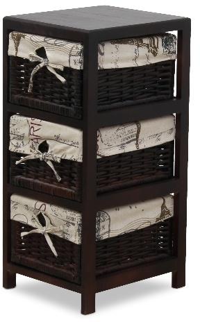 ELI 1 KOMÓD, SÖTÉTBARNA/BÉZS - Tömörfa vázzal készült komód fonott kosarakkal, amely dekoratív darabja az előszobáknak, hálószobáknak, vagy más tereknek. Ez a modell külön cikkszámon más változatban is rendelhető. Lapra szerelten, csomagolva érkezik, a szükséges tartozékokkal együtt. Az összeszereléshez rajzos útmutatót biztosítunk. A raktáron levő termékeket 3-