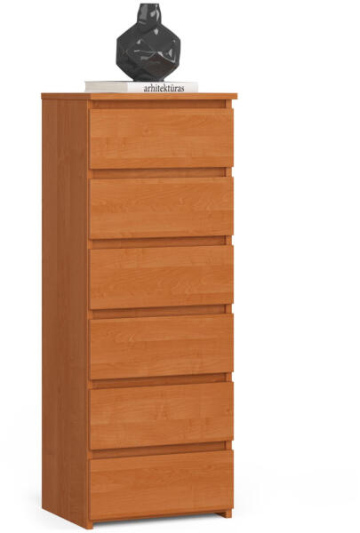 Modern, karcsú komód 6 tágas fiókkal, kiváló minőségű laminált bútorlapból készítve. Az égerfa színű kivitel és az ABS élzárás elegáns megjelenést és tartósságot biztosít. Kompakt tárolási megoldás stílusos kivitelbenAz AKORD CL6 keskeny komód tökéletes választás, ha korlátozott helyen szeretne maximális tárolókapacitást biztosítani. A 40 cm széles bútor