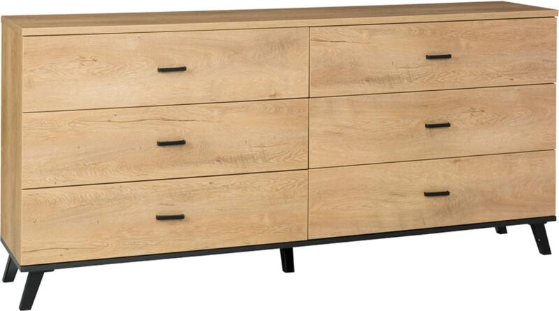 Komód, tölgyfa lefkas/fekete, SIRAN TYP 5 Nappali bútor > Komódok Anyag: laminált DTD/műanyag Szín: tölgyfa lefkas/fekete Méretek (SzxVxH): 181x40x84 cm Alsó tér magassága a padlótól: 12 cm Hat fiókkal ABS élek Műanyag lábak Modern stílus Lehetőség polcok vásárlására Bontásban szállítva