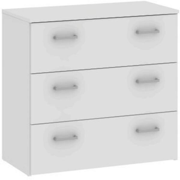 Komód, fehér, GARBO 3 Hálószoba bútorok > Komódok és polcok > Komódok Komód GARBO 3 Anyag: laminált DTD Változat: fehér Komód méretei (SzéxMéxMa): 74,1x36x69,9 cm Fiók méretei (SzéxMa): 71x22 cm 3 fiók Szállítás szétszerelve.