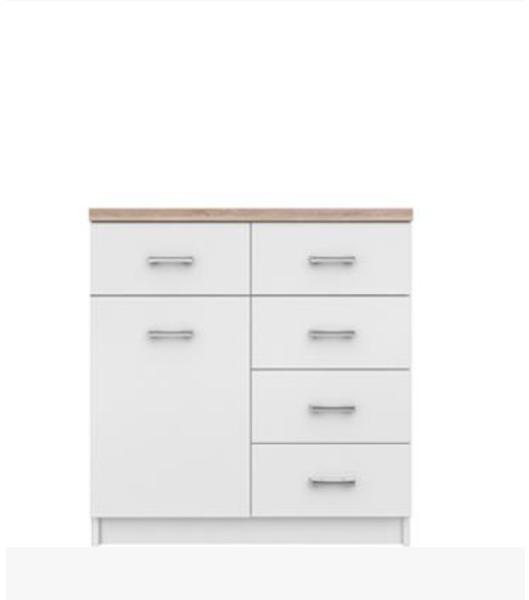 TOPTY, Komód 1d4s Anyag: DTD laminált, Szín: fehér / sonoma tölgyfa, Méretek (Sz x Ma x Mé): 80x85x33 cm