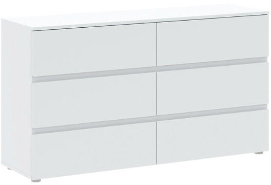 Viana II New M6 hat fiókos komód Fehér A Viana II New M6 hat fiókos komód fehér színével és minimalista dizájnjával modern eleganciát ad bármilyen belső térhez. Méretei: 137 x 40 x 77 cm. Laminált forgácslapból készült, tartós és könnyen tisztítható. Hat fiókja bőséges tárolóhelyet biztosít, ideális nagyobb helyiségekbe. A letisztult stílus és egyszerű karbanta