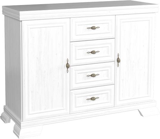 A KORA KK4 komód ideális terjedelmével és praktikus elrendezésével tökéletes választás, ha rusztikus stílusú nappalit vagy hálószobát rendez be. 4 ajtós és 1 fiókos kivitel. A KORA bútorokkal rusztikus vagy vidéki stílusú hálószobákat, nappalikat, étkezőket és dolgozószobákat rendezhet be. A bútor anyaga laminált faforgácslap, a díszlécek MDF-ből készültek. A