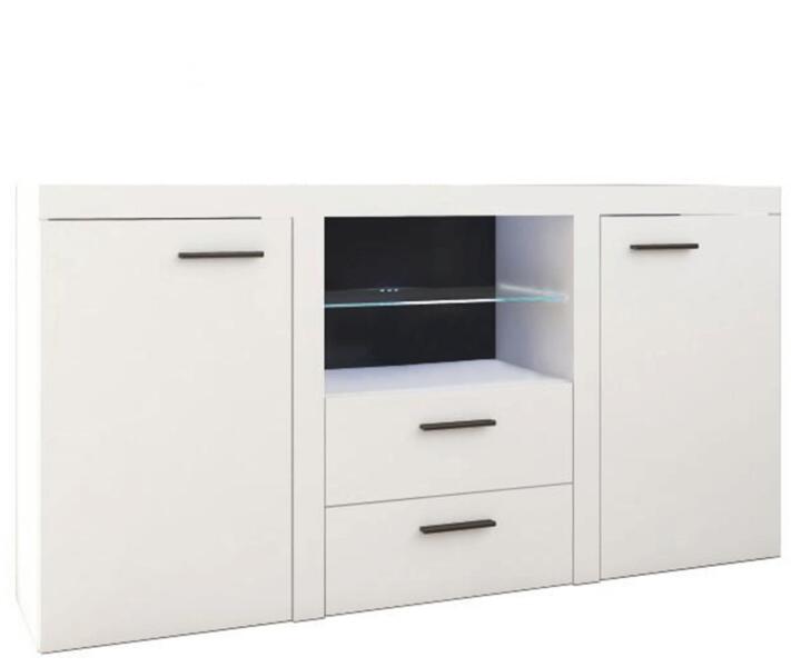 Termék részletekKomód, fehér, ROCHESTER Konyhabútorok és étkezők > Tálalószekrények és komódok > Komódok Komód 2 fiókkal, 2 ajtóval Anyag: laminált DTD Színváltozat: fehér Méretek (SzéxMaxMé): 156,4x80,5x40,2 cm Hozzárendelhető fehér színű LED világítás