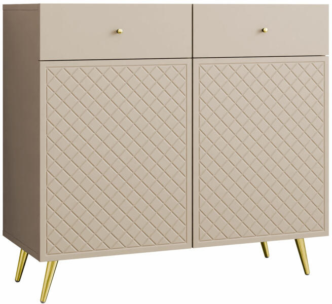 Termék részletekA DIAMOND kollekció igazán különleges bútor kollekció, amely mindenkit első látásra levesz a lábáról. Tökéletes választást jelent a modern és a klasszikus otthonokba is. Az előlapok gyönyörű halszálka mintás díszítéssel rendelkeznek. A bútor fogantyú nélküli PUSH TO OPEN nyitási rendszerrel rendelkezik. A magas fekete fém lábak stílust és eleganciát kölcsönöz