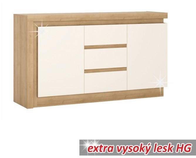 Termék részletekLEONARDO Komód LYOK01, kétajtós, háromfiókos Anyag: DTD laminált, Szín: riviéra tölgy/extra magas fényű fehér HG, Méretek (Sz x Mé x Ma): 158x89x42 cm Ellenál a karcolásoknak és a nedvességnek