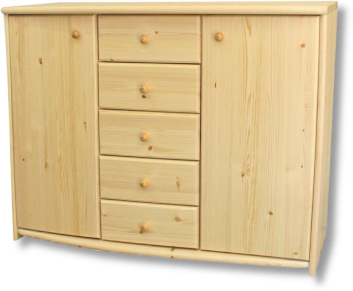 Termék részletekAndi 2 ajtós 5 fiókos borovi fenyő komód 22 mm anyagvastagságú első osztályú minőségi borovi fenyőből készítjük. Natúr lakkozott és pácolt kivitelben is rendelhető. 118 cm széles x 90 cm magas x 45 cm mély Összeszerelt termék Magyar termék!