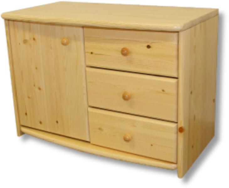 Termék részletekAndi 1 ajtós 3 fiókos borovi fenyő komód 22 mm anyagvastagságú első osztályú minőségi borovi fenyőből készítjük. Natúr lakkozott és pácolt kivitelben is rendelhető. 80 cm széles x 57 cm magas x 45 cm mély Összeszerelt termék MAGYAR TERMÉK!