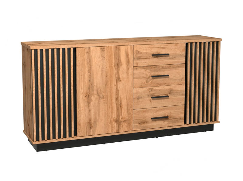 Termék részletekA LAMELO négyfiókos széles komód két ajtós szekrénnyel is rendelkezik, melynek köszönhetően számos tároló helyet biztosít. A komód az elegancia és a praktikum kombinációja. Tökéletes tároló helyet biztosít a ruháknak, fehérneműknek, zokniknak. Az ajtós szekrények mögött praktikus polcok találhatók. A tetejére pedig elhelyezheti a dísztárgyait, növényeit vagy a