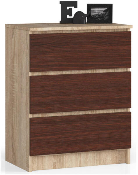 Termék részletekModern, kompakt komód három tágas fiókkal, amely tökéletesen ötvözi a Sonoma tölgy és wenge színvilágot. Kiváló minőségű, kopásálló laminált lapból készült, ABS élzárással a tartósság érdekében. Elegáns tárolási megoldás modern otthonokbaEz a stílusos komód tökéletes egyensúlyt teremt a funkcionalitás és az esztétika között. A Sonoma tölgy korpusz és