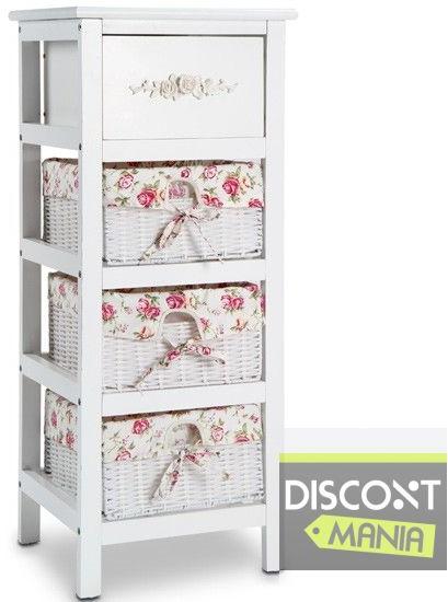 Termék részletekGyönyörű népi stílusú komód. Akár a fürdőszobában, a folyosón vagy a hálószobában - ez mindenhol egy kis gyöngyszem. A kosarak fehér Polyrattanból készültek, virágmintás szövet belsővel. A szövet belső könnyen eltávolítható és tisztítható. Könnyű, de robusztus és kemény Méretek szekrény: kb 35 x 27 x 73.5 cm max. terhelés: 8 kg Méretek fiók: kb 26 x 20 x 1