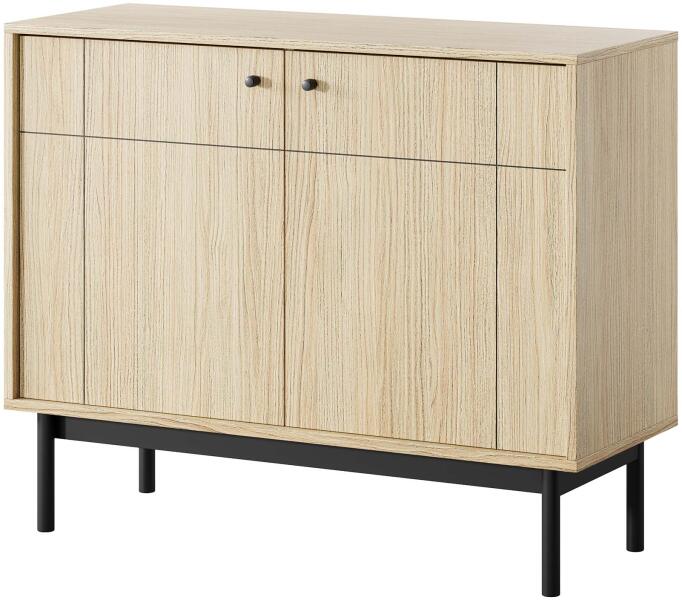 Termék részletekA JAPANDI K104 kétajtós komód linea tölgy színben készül fekete fa lábakkal kiegészítve. Modern kialakításának köszönhetően nem csak a nappaliban, de a hálószobában vagy dolgozószobában is megállja a helyét. A komód két ajtaja mögött egy-egy polc helyezkedik el. A tetejére pedig elhelyezheti a dísztárgyait, családi fényképeit vagy a növényeit. A Japandi nappali b