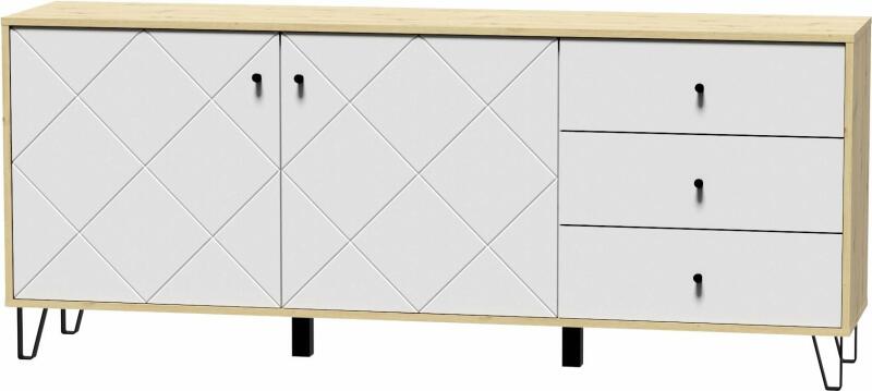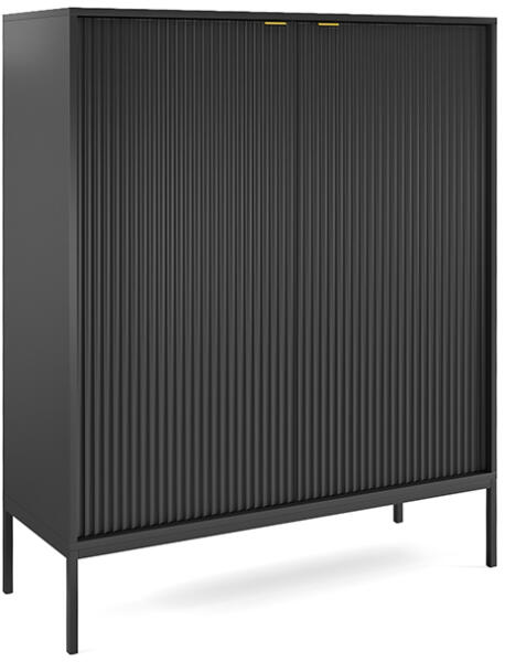 Termék részletekA hihetetlenül modern és stílusos NOVA bútor kollekció nem hiányozhat egyetlen modern otthonból sem. A bútor gyönyörű és különleges előlapjait remekül kiegészítik az arany színű fogantyúk. A könnyedségét a fekete fém szerkezet biztosítja magas lábakkal. A Nova bútor család segítségével modern nappalit rendezhet be, azonban egyes bútor darabokat elhelyezhet az elős
