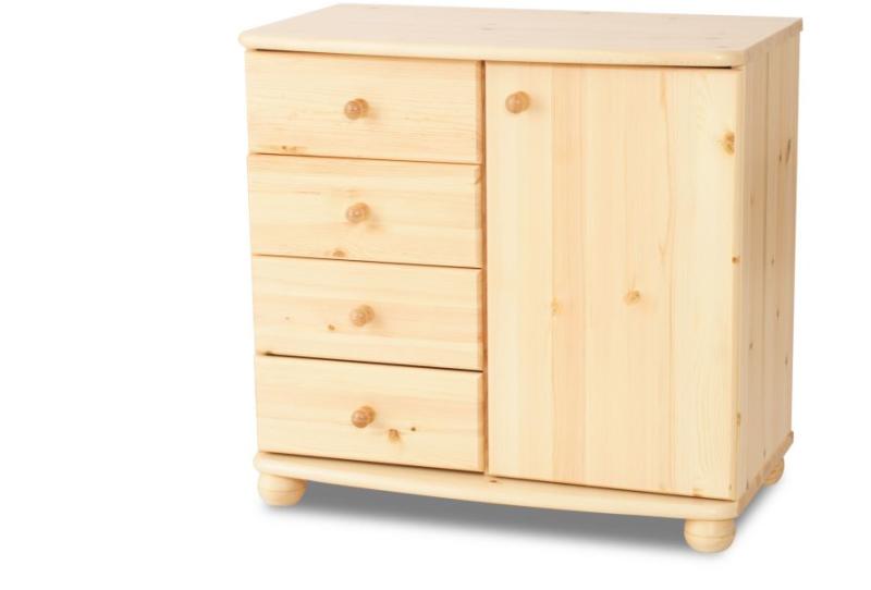Termék részletekTömör borovi fenyőből készült, magyar termék. 1 ajtó s 4 kis fiók. Pogácsa talpas, kerekített lappal. Alkalmas gyerekszobába, nappaliba, de bárhol mutatós. A termék UV-ra keményedő színtelen lakkal van kezelve de kérheti nyers (kezeletlen) és Pácolt (színes) kivitelben is. Pontos pácolási felárakról érdeklődjön telefonon kollégáinknál. Az ajtó mögött 1 polclap va