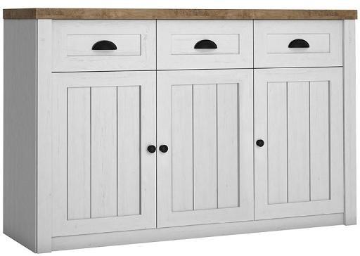 Termék részletekPROVANCE K3SP KOMÓD, ANDERSEN FENYŐ/LEFKAS TÖLGY - Komód 3 ajtóval és polcokkal, felül 3 fiókkal. A Provance egy nagyon trendi, vidéki stílusú elemes bútorcsalád, amely a nappaliban, étkezőben, hálószobában és a konyhában is nagyszerűen használható, így akár az egész lakás berendezhető elemeiből. A bútor DTD laminált alapanyagból készül, divatos fogantyúkkal. Az