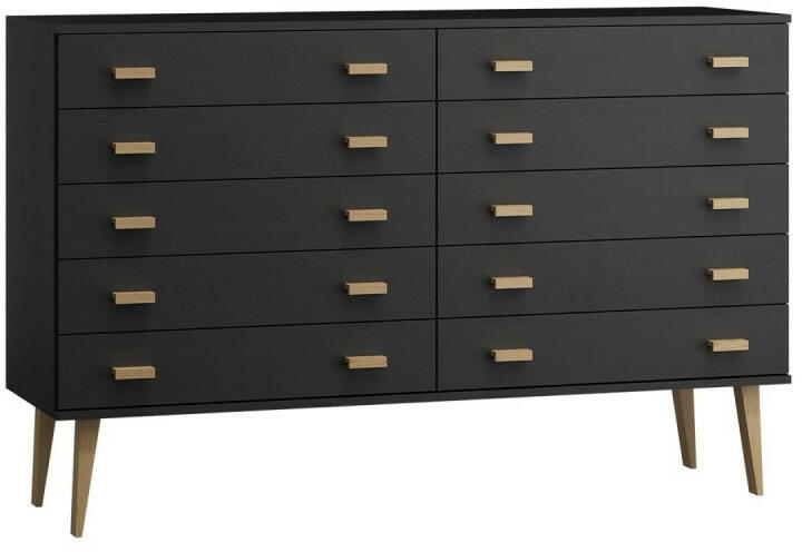A komód teljes egészében tömör fenyőfából készült. A komód fekete környezetbarát lakkal és színtelen lakkal van lakkozva. Lapraszerelve érkezik! Ez az 5-5 fiókos komód teljes egészében tömör fenyőfából készült, amit rendkívül gondos és pontos kidolgozás jellemez. A komód fekete ökológiai lakkal és átlátszó lakkal van lakkozva, ami 100%-os végső hatást bizto