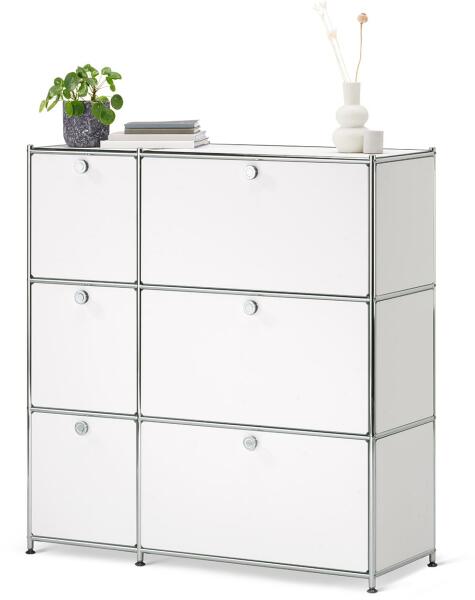 Modern, fehér komód 6 fiókkal és 2 ajtóval, kiváló minőségű 16 mm-es laminált lapból készítve. Ideális tárolási megoldás a nappaliba vagy hálószobába, strapabíró ABS élzárással és praktikus görgős fiókvezetőkkel. Elegáns tárolási megoldás modern otthonokbaEz a fehér komód tökéletes választás azoknak, akik praktikus és stílusos tárolási megoldást keresn