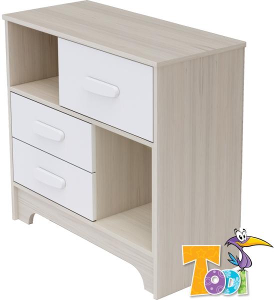 Az Ice Cream bútorokat a woodline cream bútortest színe, bordázott felületű jég-fehér előlapja és 9 színben választható polcbetétei teszik igazán trendivé. Az Ice Cream 3 fiókos komód nyitott polcokkal és zárt fiókokkal rendelkezik, melyek kiválóan pakolhatóak, jól átláthatóak és remekül rendszerezhetőek. Majd 250 l-es űrtartalmú pelenkázó komód szinte mindent e