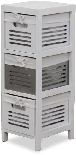 BIBI 3, 3-fiókos komód Anyag: fa Változat: fehér / szürke Méretek (Szé x Mé x Ma): 25x29x70 cm Méretek - fiók/kosár (Szé x Mé x Ma): 21x24,5x18 cm
