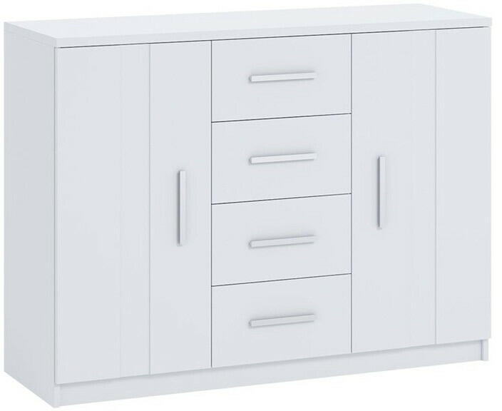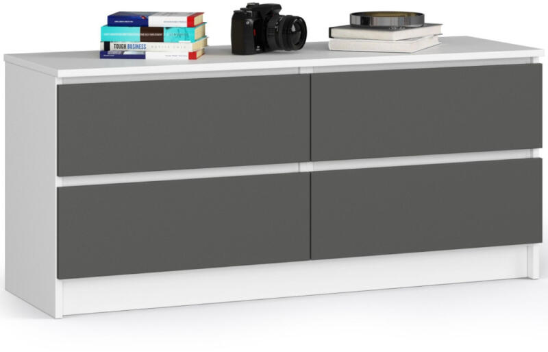 Modern, letisztult vonalvezetésű komód 4 tágas fiókkal, amely tökéletes tárolási megoldást kínál. A fehér korpusz és szürke matt frontok elegáns kontrasztot alkotnak, míg a kiváló minőségű laminált anyagok tartósságot biztosítanak. Elegáns tárolási megoldás modern otthonokbaEz a modern vonalvezetésű komód tökéletesen ötvözi a funkcionalitást és az esztétikum