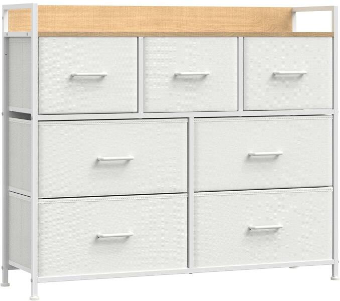 komód 7 szövet fiók fogantyúval fémvázas ipari kivitel fehér: [Tároláshoz és rendszerezéshez] 7 fiókkal (4 nagy és 3 kicsi) kategóriánként tárolja holmiját. Minden nagy fiókban 60-70 zokni, 13-16 póló vagy 7-11 nadrág, minden kis fiókban 40-45 zokni, 9-10 póló vagy 4-7 nadrág fér el. [Stabil és biztonságos] Ez a komód állítható lábakkal van felszerelve, amelyek m