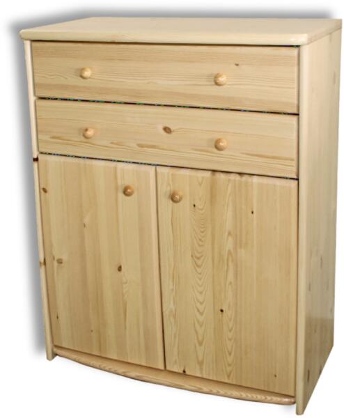 Andi 2 ajtós 2 fiókos 106 cm magas borovi fenyő komód 22 mm anyagvastagságú első osztályú minőségi borovi fenyőből készítjük. Natúr lakkozott és pácolt kivitelben is rendelhető. 80 cm szél. x 106 cm mag. x 45 cm mély. Összeszerelt termék Magyar termék! PÁCOLÁS +20%.