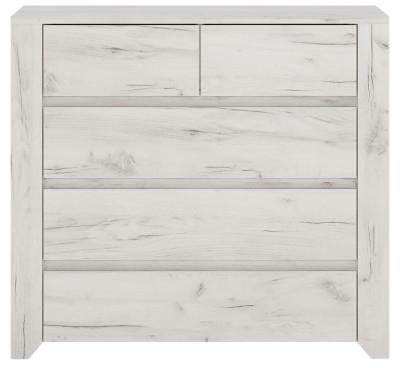 ANGEL, komód típus 43 Anyag: DTD laminált Szín: fehér craft Méretek: (Szé x Mé x Ma): 84x40,2x76,5 cm A kisebb fiókok szélessége és magassága: 34,5x16 cm A nagyobb fiókok szélessége és magassága: 69,5x16 cm A belső polc vastagsága: 1,6 cm