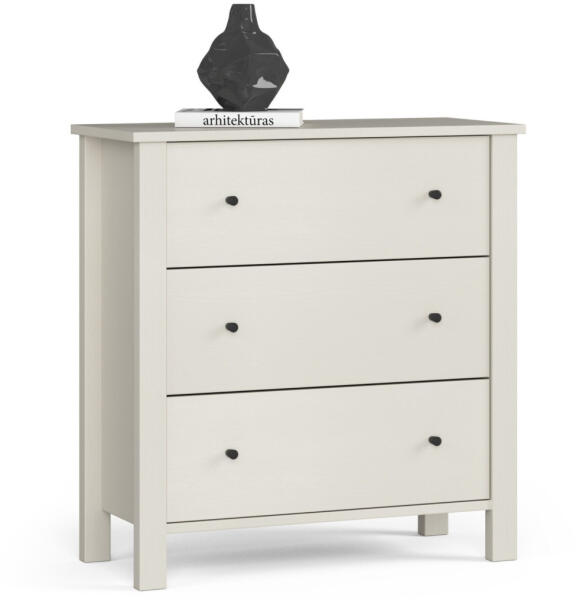 A komód teljes egészében tömör fenyőfából készült. A komód fehér környezetbarát lakkal és színtelen lakkal van lakkozva. Lapraszerelve érkezik! Ez a 2 ajtós, 3 fiókos komód teljes egészében tömör fenyőfából készült, melynek kidolgozása rendkívül gondos és precíz. A fehér ökológiai és átlátszó lakkal való bevonás csak ezt a fajta kidolgozást alkalmazva ad