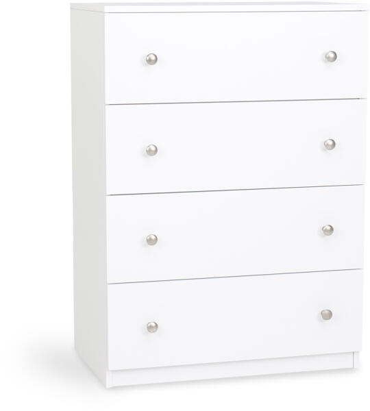 Minőségi és praktikus fehér LEO L4 komód stílusos ezüst színű fogantyúkkal. Ugyanolyan jól mutat az otthonában, mint az irodában. Ez a komód letisztult, modern designnal rendelkezik, így mindenki számára ajánljuk, aki praktikus és stílusos tároló helyet keres. A semleges fehér színének hála jól mutat a hálószobában, nappaliban vagy a gyerekszobában is. Ez az elegáns