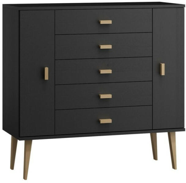 A komód teljes egészében tömör fenyőfából készült. A komód fekete környezetbarát lakkal és színtelen lakkal van lakkozva. Lapraszerelve érkezik! Ez a 2 ajtós, 5 fiókos komód teljes egészében tömör fenyőfából készült, és rendkívül gondos, precíz kidolgozással rendelkezik. Fekete ökológiai lakkal és átlátszó lakkal van lakkozva, ami 100%-os végső hatást bizt