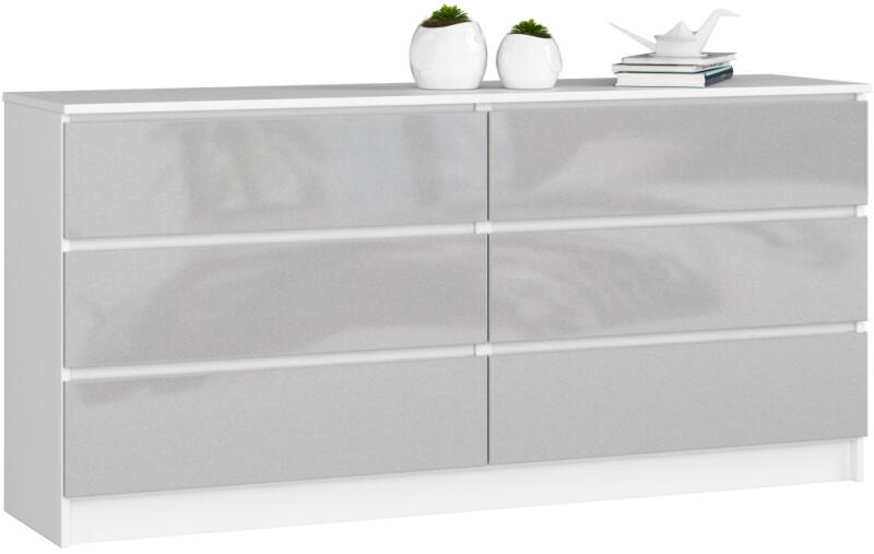 Modern, 160 cm széles komód 6 tágas fiókkal, metál magasfényű frontokkal és matt fehér korpusszal. Tökéletes tárolási megoldást kínál stílusos kivitelben a modern otthonokba. Elegáns tárolás modern megjelenésselEz a 160 cm széles komód tökéletesen ötvözi a funkcionalitást és a stílust. A metál magasfényű frontok és a matt fehér korpusz kontrasztja modern megjelen