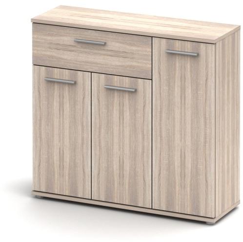 NOKO-SINGA 34, 1-fiókos, 3-ajtós komód A fogantyúk PVC-ből készültek, króm festéssel Anyag: DTD laminált Változat: sonoma tölgyfa, Méretek ? komód (Szé x Ma x Mé): 90 x 82 x 29 cm Méretek - fiók (Szé x Ma): 59,3 x 18,9 cm Méretek - ajtók (Szé x Ma): 29,5 x 57,2 - 76,4 cm A polc anyagának vastagsága: 1,6 cm A lábak PVC-ből készültek, és 1,5 cm magasak Minőségi szlová