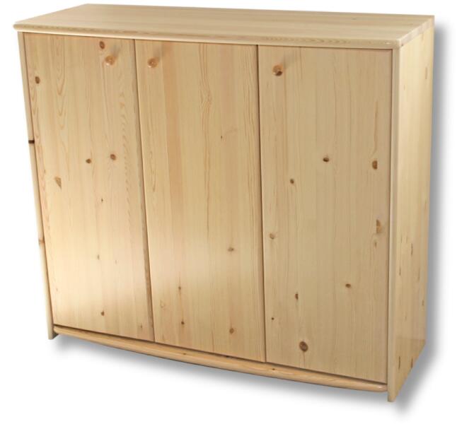 Andi 3 ajtós 106 cm magas borovi fenyő komód 22 mm anyagvastagságú első osztályú minőségi borovi fenyőből készítjük. Natúr lakkozott és pácolt kivitelben is rendelhető. 118 cm széles x 106 cm magas x 45 cm mély Összeszerelt termék Magyar termék!