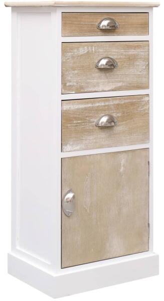 Kisszekrényünk praktikus és egyben mutatós kiegészítője lesz otthonának. Telefonállványként, hálószobai szekrényként stb. is használható. A császárfából készült fiókos szekrény rendkívül tartós és erős. A kisasztal 3 fiókkal és egy ajtóval bőséges tárolóhelyet biztosít. Emellett a tartós asztallap ideális dísztárgyak, képkeretek vagy cserepes növények e
