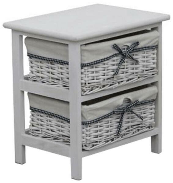Komód (éjjeliszekrény) tömörfa vázzal 2 fonott kosarakkal, anyag: fa+vesszők, színváltozat: szürkésfehér, Szé/Ma/Mé: 40x42x29 cm. .