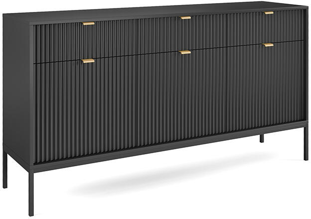 A hihetetlenül modern és stílusos NOVA bútor kollekció nem hiányozhat egyetlen modern otthonból sem. A bútor gyönyörű és különleges előlapjait remekül kiegészítik az arany színű fogantyúk. A könnyedségét a fekete fém szerkezet biztosítja magas lábakkal. A Nova bútor család segítségével modern nappalit rendezhet be, azonban egyes bútor darabokat elhelyezhet az elős