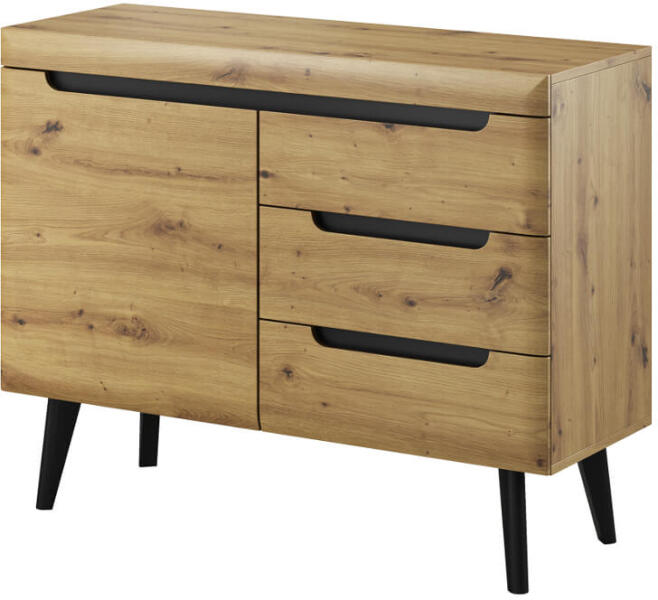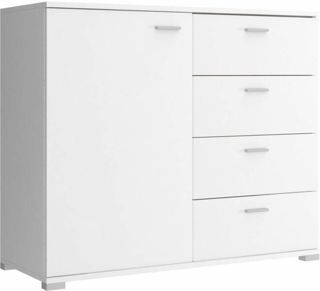 A sonoma tölgy vagy fehér színeiben kapható komód remek megoldás különféle tárgyak, ruhák vagy dokumentumok tárolására. A tetejére növényeket vagy dekorációs tárgyakat helyezhet el. Használható a gyermekszobában, a nappaliban vagy a hálószobában. 16 mm-es laminált deszkából készül. A széleket ABS élekkel zárták le. A bútor 4 tágas fiókkal rendelkezik, az ajtó